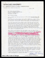 Letter from Roland E. Wolseley to Thelma Gorham. Wolseley asking Gorham for biographical information about herself which he planned to include in a book on Black Journalism that he was writing. November 3, 1987. -