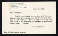 Letter from Marcus H. Boulware to Thelma Gorham. Boulware asking Gorham to forward him a patent record he had asked her for. June 9, 1966. -