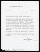 Letter from Tom Engleman to Newsletter Reader of the Newspaper Fund Inc. Engleman searching for applicants for journalism training courses for teachers. Also mentions the upcoming 1979 national High School Journalism Teacher of the Year award. May, 1979.