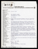 Letter from Ruby Dee to Thelma Gorham. Dee informing Gorham that she did not have any speeches that she could send to her. Informs her that she could send along biographical information. June 28, 1978. -