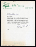 Letter from Sheryl Clayton to Jean E. Karl. Clayton thanking Karl for a past talk she gave. Reminds her of her willingness to read a manuscript for a children's book written by Thelma Gorham. Indicates that Gorham was going to mail Karl the book very soon. May 9, 1977. -