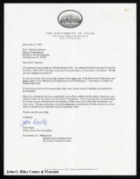Letter from John Pauly to Thelma Gorham. Pauly asking Gorham to evaluate a manuscript which was submitted for publication in American Journalism.December 8, 1989. -