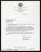 Letter from Merri Belland to Thelma Gorham. Belland writing to invite Gorham to a ceremony hosted by the Florida Folklore Society. May 18, 1988 -