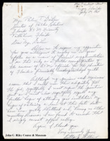 Letter from Betty Jeanene Williams to Thelma Gorham. Williams expresses thanks for Gorham's previous interest in her joining the journalism program at Florida A&M. Williams explains she is unable to accept a paid position at Florida A&M, nor is she able to attend as a student. July 29, 1964 -