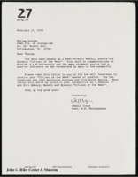 Letter from Sherry Jones to Thelma Gorham. Jones informing Gorham that she had been chosen as "Citizen of the Week" by the WTXL-TV. Mentions that this decision was largely due to her work in journalism at Florida A & M. February 19, 1990. -