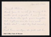 Letter from illegible to Thelma Gorham. Writer discusses a recent event that Gorham attended, and praises Gorham for her help and insights into many matters. November 25, 1962 -