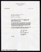 Letter from F. J. Thompson, principal of University High School, to the Gorham family. Letter informs them that Darryl was accepted to 7th grade at the school. -