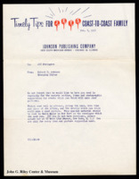 Letter from Robert E. Johnson toJETStringers. Johnson praising Stringer reporters. Indicates that more candid stories and photos were needed. Provides more detail on the magazine's needs throughout. June 30, 1958. -