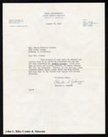 Letter from Charles S. Johnson to Thelma Gorham. Johnson apologized for Gorham missing previous issues of the Monthly Summary from Fisk University. August 17, 1945 -