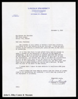 Letter from Sherman D. Scruggs to Thelma Gorham [addressed Thelma Rea Thurston]. Informs Gorham that a position teaching journalism at Lincoln University was not something he could guarantee at that time. November 2, 1939. -