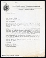 Letter from Betty Harris to Thelma Gorham. Harris thanked Gorham for accepting the American Business Women's Association's request for her as a speaker. February 12, 1991 -