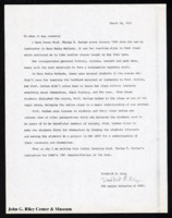 Letter from Thelma Gorham to faculty of the Department of Music and Creative Therapy. Gorham writing a letter of recommendation on behalf of Carole Beveridge. Gorham recommends her employment with the department. May 9, 1972 -