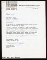Letter from Laurence E. Humber to Thelma Gorham. Humber explained how his company, Alden Electronic & Impulse Recording Equipment Co. Inc, could assist the school of journalism. February 23, 1967 -
