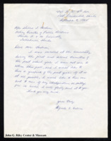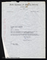 A letter from Nathaniel Wesley Jr. and Everett Fleming Jr., the President and Vice-President of the FAMU Student Government Association, to Thelma T. Gorham. In it, Wesley Jr. and Fleming Jr. ask about the status of the 1964 edition of the Rattler. -