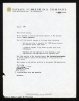 A letter from J. E. Peters, Vice President of Sales and Marketing at the Taylor Publishing Company, to "Valued Customer", discussing a new typeface. -