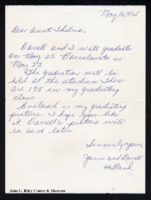 Letter from Darell Holland and Janis Holland to Thelma Gorham. The Hollands letting Gorham know about their upcoming graduation ceremony. May 16, 1965. -