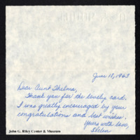 Letter from Helen to Thelma Gorham. Helen thanking Gorham for a congratulations card she had sent. June 18, 1963