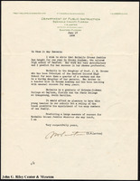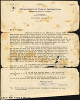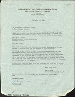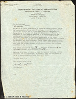 A letter from T. W. Lawton to J. N. Crooms, informing Crooms that the school board is looking into acquiring more financial assistance from the federal government. Lawton also expresses the board's disapproval of Crooms' students taking so many extra curricular activities, distracting them from their school work, and the use of county school buses for long trips, but the board has approved the use of the buses for a trip to Tallahassee, on the condition that the board be paid a rental fee.