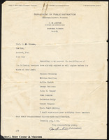 A letter from T. W. Lawton, "to whom it may concern" enthusiastically praising the work of Nathalie Crooms Jenkins (the daughter of J. N. Crooms) as a teacher, but seeming to say that she cannot work in Seminole County because of a school board prohibition against the appointment of too many members from one family.