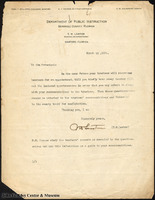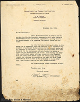 A letter from T. W. Lawton, Secretary and Superintendent of Public Instruction for Seminole County, to J. N. Crooms, then principal of Crooms Academy. In the letter, Lawton asks Crooms to have all teachers fill out a questionnaire and submit them along with his recommendations to the trustees.