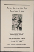 A program for the funeral service for Deacon James E. Mayo, held at New Mt. Zion Baptist Church.