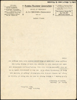 A letter from T. W. Lawton, Secretary and Superintendent of Public Instruction for Seminole County, to J. N. Crooms, then principal of Crooms Academy. In the letter, Lawton informs Crooms of the imminent recommendation of the Florida Education Association to establish a teachers' retirement system for the state.