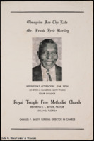 A program for the funeral service for Frank Fred Bartley, held at Royal Temple Free Methodist Church.
