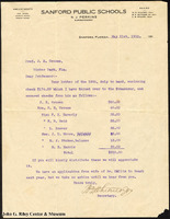 A letter from T. W. Lawton, Secretary and Superintendent of Public Instruction for Seminole County, to J. N. Crooms, then principal of Crooms Academy. In the letter, Lawton informs Crooms that if he submits his bill for railroad fare, Lawton will present it to the board for reimbursement.