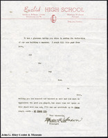 An undated letter from Maxwell W. Saxon, principal of Euclid High School, to an unknown recipient, thanking them or their attending the dedication of a new building. -