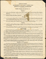 An official notice from the Florida Department of Public Instruction, presenting the schedule of teacher's exams. -