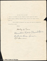 Letter of Certification from Malloy H. Ron, Clementine Rout. Thumbtzen, Gertrude Roux-Swain, C. D. Dawson