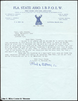 A letter from Albert M. Bethune Sr., son of Mary McLeod Bethune, regarding his mother's shares in the Welricha Corporation (misspelled here as "Welrechia Corp"). Given the letterhead, it seems that Albert M. Bethune Sr. was a member of the Florida State Association of the Improved Benevolent Productive Order of Elks.