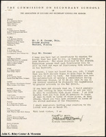 A letter from S. Meredith Mosely, from the Florida Commission on Secondary Schools of The Association of Colleges and Secondary Schools For Negroes, to J. N. Crooms. In it, Mosely wishes to meet with Crooms to discuss increasing contributions for the war effort (as the letter is undated, it is likely, but unconfirmed, that this is in regards to WWII).