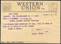 A Western Union telegram from Elsey R. James to J. N. Crooms confirming travel arrangements. -