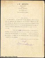 A letter from J. W. Mickens, notary public and "Dealer in Fine Shoes", that does not identify the recipient, but is addressed to "my dear prof.", thus possibly to Crooms, but this is unconfirmed. In the letter, Mickens discusses travel/hotel arrangements. -