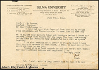 A letter from a person identified only as "Joel" to J. N. Crooms, on Selma University stationary. In the letter, Joel on personal matters. Also included is a receipt from the Selma National Bank of a payment of $75 to J. N. Crooms from C. J. Hurston. It is unconfirmed if this person is the "Joel" who wrote the letter. -
